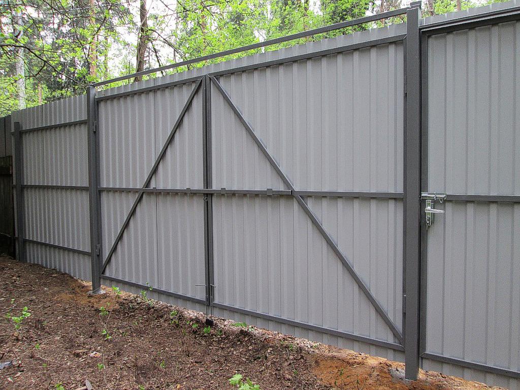 Откатные ворота из профнастила с автоматикой